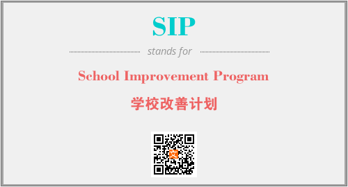 上述内容是“School Improvement Program”作为“SIP”的缩写,解释为“学校改善计划”时的信息,以及英文缩略词SIP所代表的英文单词,其对应的中文拼音、详细解释以及在英文中的流行度和相关分类、应用领域及应用示例等。