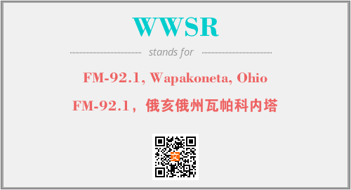 上述内容是“FM-92.1, Wapakoneta, Ohio”作为“WWSR”的缩写,解释为“FM-92.1,俄亥俄州瓦帕科内塔”时的信息,以及英文缩略词WWSR所代表的英文单词,其对应的中文拼音、详细解释以及在英文中的流行度和相关分类、应用领域及应用示例等。