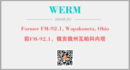 上述内容是“Former FM-92.1, Wapakoneta, Ohio”作为“WERM”的缩写,解释为“前FM-92.1,俄亥俄州瓦帕科内塔”时的信息,以及英文缩略词WERM所代表的英文单词,其对应的中文拼音、详细解释以及在英文中的流行度和相关分类、应用领域及应用示例等。