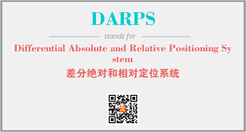 上述内容是“Differential Absolute and Relative Positioning System”作为“DARPS”的缩写,解释为“差分绝对和相对定位系统”时的信息,以及英文缩略词DARPS所代表的英文单词,其对应的中文拼音、详细解释以及在英文中的流行度和相关分类、应用领域及应用示例等。