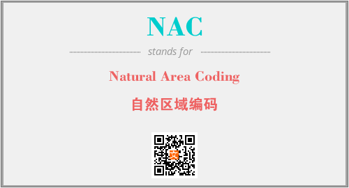 上述内容是“Natural Area Coding”作为“NAC”的缩写,解释为“自然区域编码”时的信息,以及英文缩略词NAC所代表的英文单词,其对应的中文拼音、详细解释以及在英文中的流行度和相关分类、应用领域及应用示例等。