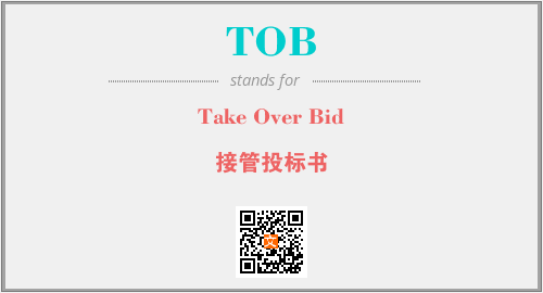 英文缩略词“TOB”经常作为“Take Over Bid”的英文缩写来使用,中文表示:“接管投标书”。本文将详细介绍英文缩写词TOB所代表英文单词,其对应的中文拼音、详细解释以及在英语中的流行度。此外,还有关于缩略词TOB的分类、应用领域及相关应用示例等。