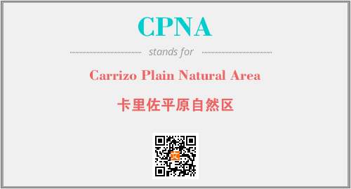 上述内容是“Carrizo Plain Natural Area”作为“CPNA”的缩写,解释为“卡里佐平原自然区”时的信息,以及英文缩略词CPNA所代表的英文单词,其对应的中文拼音、详细解释以及在英文中的流行度和相关分类、应用领域及应用示例等。