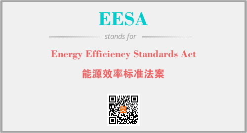 英文缩略词“EESA”经常作为“Energy Efficiency Standards Act”的英文缩写来使用,中文表示:“能源效率标准法案”。本文将详细介绍英文缩写词EESA所代表英文单词,其对应的中文拼音、详细解释以及在英语中的流行度。此外,还有关于缩略词EESA的分类、应用领域及相关应用示例等。