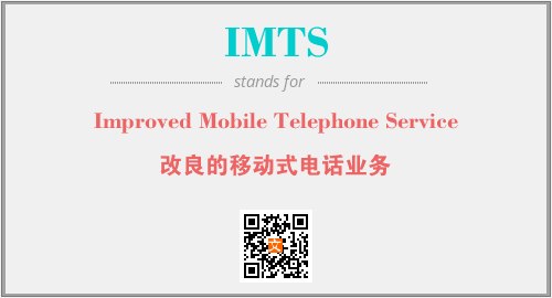 上述内容是“Improved Mobile Telephone Service”作为“IMTS”的缩写,解释为“改良的移动式电话业务”时的信息,以及英文缩略词IMTS所代表的英文单词,其对应的中文拼音、详细解释以及在英文中的流行度和相关分类、应用领域及应用示例等。