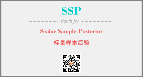 英文缩略词“SSP”经常作为“Scalar Sample Posterior”的英文缩写来使用,中文表示:“标量样本后验”。本文将详细介绍英文缩写词SSP所代表英文单词,其对应的中文拼音、详细解释以及在英语中的流行度。此外,还有关于缩略词SSP的分类、应用领域及相关应用示例等。