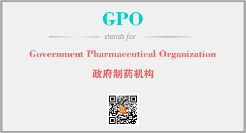以上为Government Pharmaceutical Organization英文缩略词GPO的中文解释,以及该英文缩写在英语的流行度、分类和应用领域方面的信息。