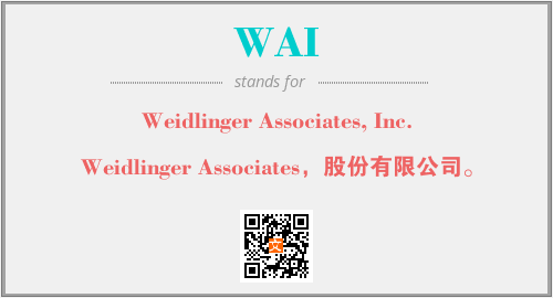 上述内容是“Weidlinger Associates, Inc.”作为“WAI”的缩写,解释为“Weidlinger Associates,股份有限公司。”时的信息,以及英文缩略词WAI所代表的英文单词,其对应的中文拼音、详细解释以及在英文中的流行度和相关分类、应用领域及应用示例等。