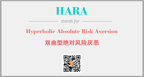 上述内容是“Hyperbolic Absolute Risk Aversion”作为“HARA”的缩写,解释为“双曲型绝对风险厌恶”时的信息,以及英文缩略词HARA所代表的英文单词,其对应的中文拼音、详细解释以及在英文中的流行度和相关分类、应用领域及应用示例等。