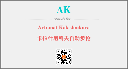 以上为Avtomat Kalashnikova英文缩略词AK的中文解释,以及该英文缩写在英语的流行度、分类和应用领域方面的信息。