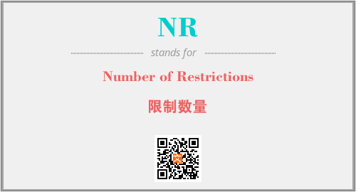 上述内容是“Number of Restrictions”作为“NR”的缩写,解释为“限制数量”时的信息,以及英文缩略词NR所代表的英文单词,其对应的中文拼音、详细解释以及在英文中的流行度和相关分类、应用领域及应用示例等。