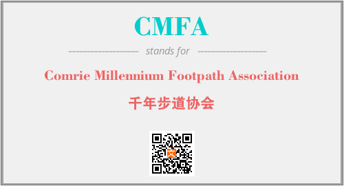 上述内容是“Comrie Millennium Footpath Association”作为“CMFA”的缩写,解释为“千年步道协会”时的信息,以及英文缩略词CMFA所代表的英文单词,其对应的中文拼音、详细解释以及在英文中的流行度和相关分类、应用领域及应用示例等。