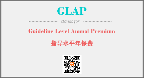 上述内容是“Guideline Level Annual Premium”作为“GLAP”的缩写,解释为“指导水平年保费”时的信息,以及英文缩略词GLAP所代表的英文单词,其对应的中文拼音、详细解释以及在英文中的流行度和相关分类、应用领域及应用示例等。