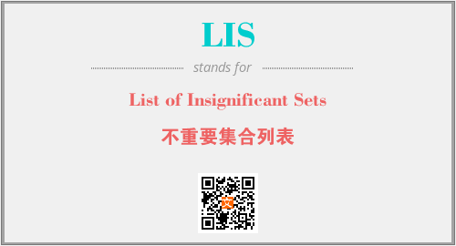 上述内容是“List of Insignificant Sets”作为“LIS”的缩写,解释为“不重要集合列表”时的信息,以及英文缩略词LIS所代表的英文单词,其对应的中文拼音、详细解释以及在英文中的流行度和相关分类、应用领域及应用示例等。