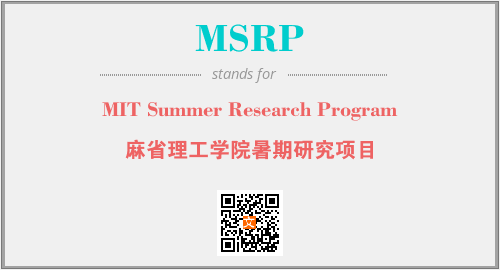 上述内容是“MIT Summer Research Program”作为“MSRP”的缩写,解释为“麻省理工学院暑期研究项目”时的信息,以及英文缩略词MSRP所代表的英文单词,其对应的中文拼音、详细解释以及在英文中的流行度和相关分类、应用领域及应用示例等。