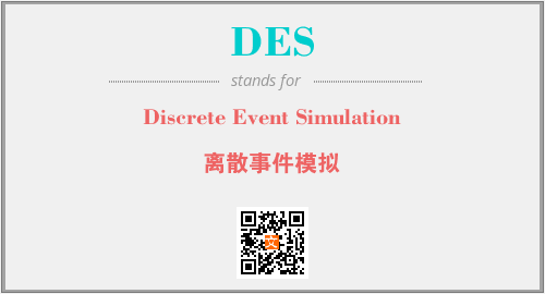 上述内容是“Discrete Event Simulation”作为“DES”的缩写,解释为“离散事件模拟”时的信息,以及英文缩略词DES所代表的英文单词,其对应的中文拼音、详细解释以及在英文中的流行度和相关分类、应用领域及应用示例等。