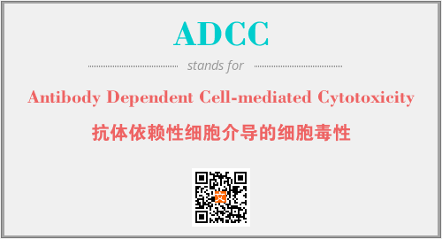英文缩略词“ADCC”经常作为“Antibody Dependent Cell-mediated Cytotoxicity”的英文缩写来使用,中文表示:“抗体依赖性细胞介导的细胞毒性”。本文将详细介绍英文缩写词ADCC所代表英文单词,其对应的中文拼音、详细解释以及在英语中的流行度。此外,还有关于缩略词ADCC的分类、应用领域及相关应用示例等。