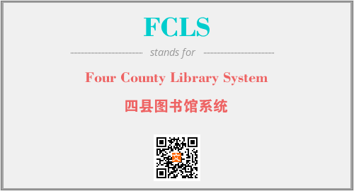 英文缩略词“FCLS”经常作为“Four County Library System”的英文缩写来使用,中文表示:“四县图书馆系统”。本文将详细介绍英文缩写词FCLS所代表英文单词,其对应的中文拼音、详细解释以及在英语中的流行度。此外,还有关于缩略词FCLS的分类、应用领域及相关应用示例等。
