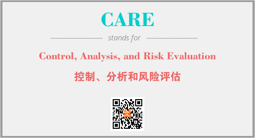上述内容是“Control, Analysis, and Risk Evaluation”作为“CARE”的缩写,解释为“控制、分析和风险评估”时的信息,以及英文缩略词CARE所代表的英文单词,其对应的中文拼音、详细解释以及在英文中的流行度和相关分类、应用领域及应用示例等。