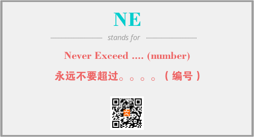 上述内容是“Never Exceed .... (number)”作为“NE”的缩写,解释为“永远不要超过。。。。(编号)”时的信息,以及英文缩略词NE所代表的英文单词,其对应的中文拼音、详细解释以及在英文中的流行度和相关分类、应用领域及应用示例等。