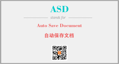 上述内容是“Auto Save Document”作为“ASD”的缩写,解释为“自动保存文档”时的信息,以及英文缩略词ASD所代表的英文单词,其对应的中文拼音、详细解释以及在英文中的流行度和相关分类、应用领域及应用示例等。