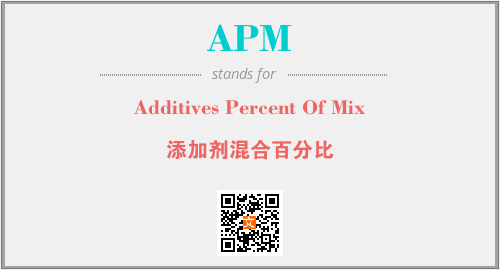 英文缩略词“APM”经常作为“Additives Percent Of Mix”的英文缩写来使用,中文表示:“添加剂混合百分比”。本文将详细介绍英文缩写词APM所代表英文单词,其对应的中文拼音、详细解释以及在英语中的流行度。此外,还有关于缩略词APM的分类、应用领域及相关应用示例等。