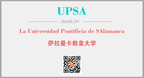 上述内容是“La Universidad Pontificia de SAlamanca”作为“UPSA”的缩写,解释为“萨拉曼卡教皇大学”时的信息,以及英文缩略词UPSA所代表的英文单词,其对应的中文拼音、详细解释以及在英文中的流行度和相关分类、应用领域及应用示例等。