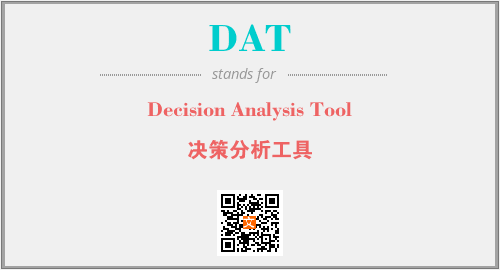 上述内容是“Decision Analysis Tool”作为“DAT”的缩写,解释为“决策分析工具”时的信息,以及英文缩略词DAT所代表的英文单词,其对应的中文拼音、详细解释以及在英文中的流行度和相关分类、应用领域及应用示例等。