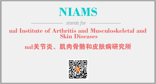 上述内容是“nal Institute of Arthritis and Musculoskeletal and Skin Diseases”作为“NIAMS”的缩写,解释为“nal关节炎、肌肉骨骼和皮肤病研究所”时的信息,以及英文缩略词NIAMS所代表的英文单词,其对应的中文拼音、详细解释以及在英文中的流行度和相关分类、应用领域及应用示例等。