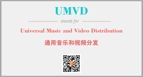 上述内容是“Universal Music and Video Distribution”作为“UMVD”的缩写,解释为“通用音乐和视频分发”时的信息,以及英文缩略词UMVD所代表的英文单词,其对应的中文拼音、详细解释以及在英文中的流行度和相关分类、应用领域及应用示例等。