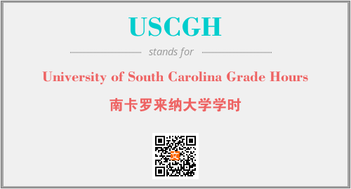 上述内容是“University of South Carolina Grade Hours”作为“USCGH”的缩写,解释为“南卡罗来纳大学学时”时的信息,以及英文缩略词USCGH所代表的英文单词,其对应的中文拼音、详细解释以及在英文中的流行度和相关分类、应用领域及应用示例等。