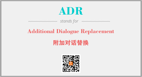 以上为Additional Dialogue Replacement英文缩略词ADR的中文解释,以及该英文缩写在英语的流行度、分类和应用领域方面的信息。