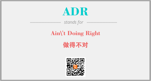 英文缩略词“ADR”经常作为“Ain\'t Doing Right”的英文缩写来使用,中文表示:“做得不对”。本文将详细介绍英文缩写词ADR所代表英文单词,其对应的中文拼音、详细解释以及在英语中的流行度。此外,还有关于缩略词ADR的分类、应用领域及相关应用示例等。