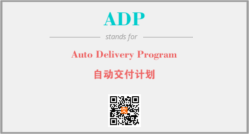 英文缩略词“ADP”经常作为“Auto Delivery Program”的英文缩写来使用,中文表示:“自动交付计划”。本文将详细介绍英文缩写词ADP所代表英文单词,其对应的中文拼音、详细解释以及在英语中的流行度。此外,还有关于缩略词ADP的分类、应用领域及相关应用示例等。