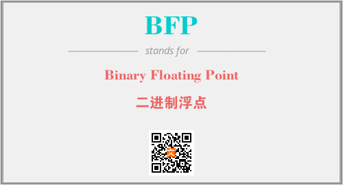 上述内容是“Binary Floating Point”作为“BFP”的缩写,解释为“二进制浮点”时的信息,以及英文缩略词BFP所代表的英文单词,其对应的中文拼音、详细解释以及在英文中的流行度和相关分类、应用领域及应用示例等。
