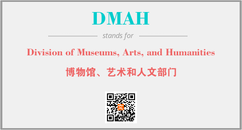 上述内容是“Division of Museums, Arts, and Humanities”作为“DMAH”的缩写,解释为“博物馆、艺术和人文部门”时的信息,以及英文缩略词DMAH所代表的英文单词,其对应的中文拼音、详细解释以及在英文中的流行度和相关分类、应用领域及应用示例等。