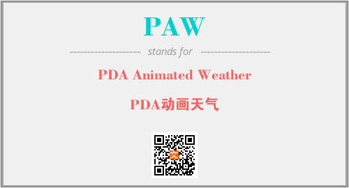 英文缩略词“PAW”经常作为“PDA Animated Weather”的英文缩写来使用,中文表示:“PDA动画天气”。本文将详细介绍英文缩写词PAW所代表英文单词,其对应的中文拼音、详细解释以及在英语中的流行度。此外,还有关于缩略词PAW的分类、应用领域及相关应用示例等。