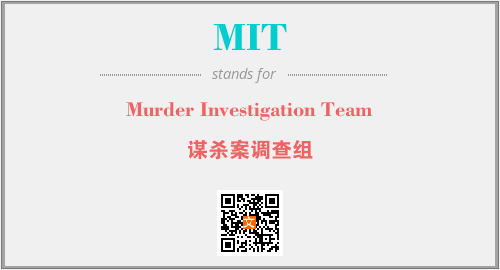 英文缩略词“MIT”经常作为“Murder Investigation Team”的英文缩写来使用,中文表示:“谋杀案调查组”。本文将详细介绍英文缩写词MIT所代表英文单词,其对应的中文拼音、详细解释以及在英语中的流行度。此外,还有关于缩略词MIT的分类、应用领域及相关应用示例等。