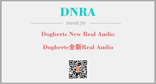 上述内容是“Dogberts New Real Audio”作为“DNRA”的缩写,解释为“Dogberts全新Real Audio”时的信息,以及英文缩略词DNRA所代表的英文单词,其对应的中文拼音、详细解释以及在英文中的流行度和相关分类、应用领域及应用示例等。