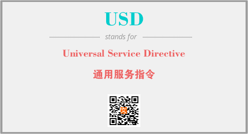 英文缩略词“USD”经常作为“Universal Service Directive”的英文缩写来使用,中文表示:“通用服务指令”。本文将详细介绍英文缩写词USD所代表英文单词,其对应的中文拼音、详细解释以及在英语中的流行度。此外,还有关于缩略词USD的分类、应用领域及相关应用示例等。