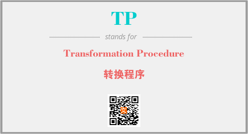 上述内容是“Transformation Procedure”作为“TP”的缩写,解释为“转换程序”时的信息,以及英文缩略词TP所代表的英文单词,其对应的中文拼音、详细解释以及在英文中的流行度和相关分类、应用领域及应用示例等。