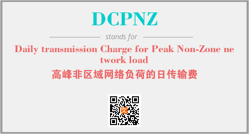 上述内容是“Daily transmission Charge for Peak Non-Zone network load”作为“DCPNZ”的缩写,解释为“高峰非区域网络负荷的日传输费”时的信息,以及英文缩略词DCPNZ所代表的英文单词,其对应的中文拼音、详细解释以及在英文中的流行度和相关分类、应用领域及应用示例等。