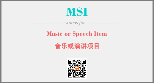 上述内容是“Music or Speech Item”作为“MSI”的缩写,解释为“音乐或演讲项目”时的信息,以及英文缩略词MSI所代表的英文单词,其对应的中文拼音、详细解释以及在英文中的流行度和相关分类、应用领域及应用示例等。
