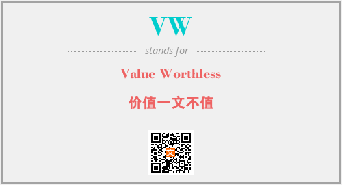 英文缩略词“VW”经常作为“Value Worthless”的英文缩写来使用,中文表示:“价值一文不值”。本文将详细介绍英文缩写词VW所代表英文单词,其对应的中文拼音、详细解释以及在英语中的流行度。此外,还有关于缩略词VW的分类、应用领域及相关应用示例等。