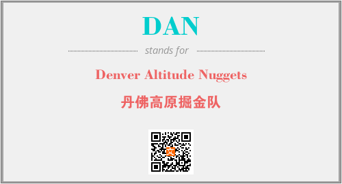 上述内容是“Denver Altitude Nuggets”作为“DAN”的缩写,解释为“丹佛高原掘金队”时的信息,以及英文缩略词DAN所代表的英文单词,其对应的中文拼音、详细解释以及在英文中的流行度和相关分类、应用领域及应用示例等。