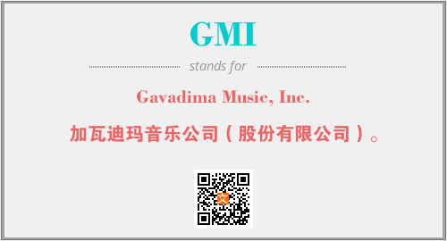 上述内容是“Gavadima Music, Inc.”作为“GMI”的缩写,解释为“加瓦迪玛音乐公司(股份有限公司)。”时的信息,以及英文缩略词GMI所代表的英文单词,其对应的中文拼音、详细解释以及在英文中的流行度和相关分类、应用领域及应用示例等。