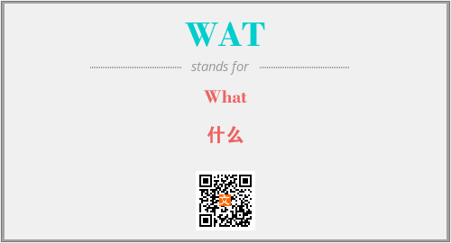 上述内容是“What”作为“WAT”的缩写,解释为“什么”时的信息,以及英文缩略词WAT所代表的英文单词,其对应的中文拼音、详细解释以及在英文中的流行度和相关分类、应用领域及应用示例等。