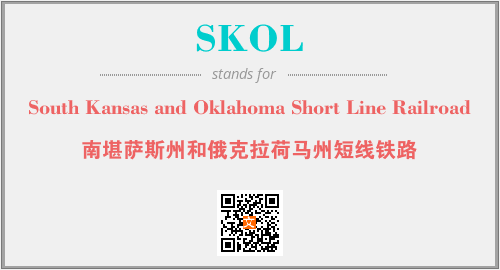 上述内容是“South Kansas and Oklahoma Short Line Railroad”作为“SKOL”的缩写,解释为“南堪萨斯州和俄克拉荷马州短线铁路”时的信息,以及英文缩略词SKOL所代表的英文单词,其对应的中文拼音、详细解释以及在英文中的流行度和相关分类、应用领域及应用示例等。