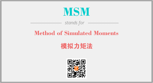 英文缩略词“MSM”经常作为“Method of Simulated Moments”的英文缩写来使用,中文表示:“模拟力矩法”。本文将详细介绍英文缩写词MSM所代表英文单词,其对应的中文拼音、详细解释以及在英语中的流行度。此外,还有关于缩略词MSM的分类、应用领域及相关应用示例等。