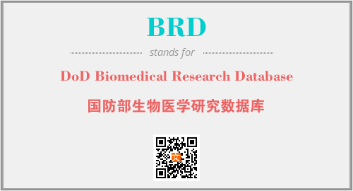上述内容是“DoD Biomedical Research Database”作为“BRD”的缩写,解释为“国防部生物医学研究数据库”时的信息,以及英文缩略词BRD所代表的英文单词,其对应的中文拼音、详细解释以及在英文中的流行度和相关分类、应用领域及应用示例等。